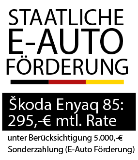 *ŠKODA ENYAQ 85 (286 PS): Ein unverbindliches und repräsentatives Privatkunden-Kilometerleasingangebot der ŠKODA Leasing, Zweigniederlassung der Volkswagen Leasing GmbH, Gifhorner Str. 57, 38112 Braunschweig, für die wir als ungebundener Vermittler gemeinsam mit dem Kunden die für den Abschluss des Leasingvertrags nötigen Vertragsunterlagen zusammenstellen. Bonität vorausgesetztl. Ink. MwSt. Zuzüglich Überführungskosten 1.290 €.